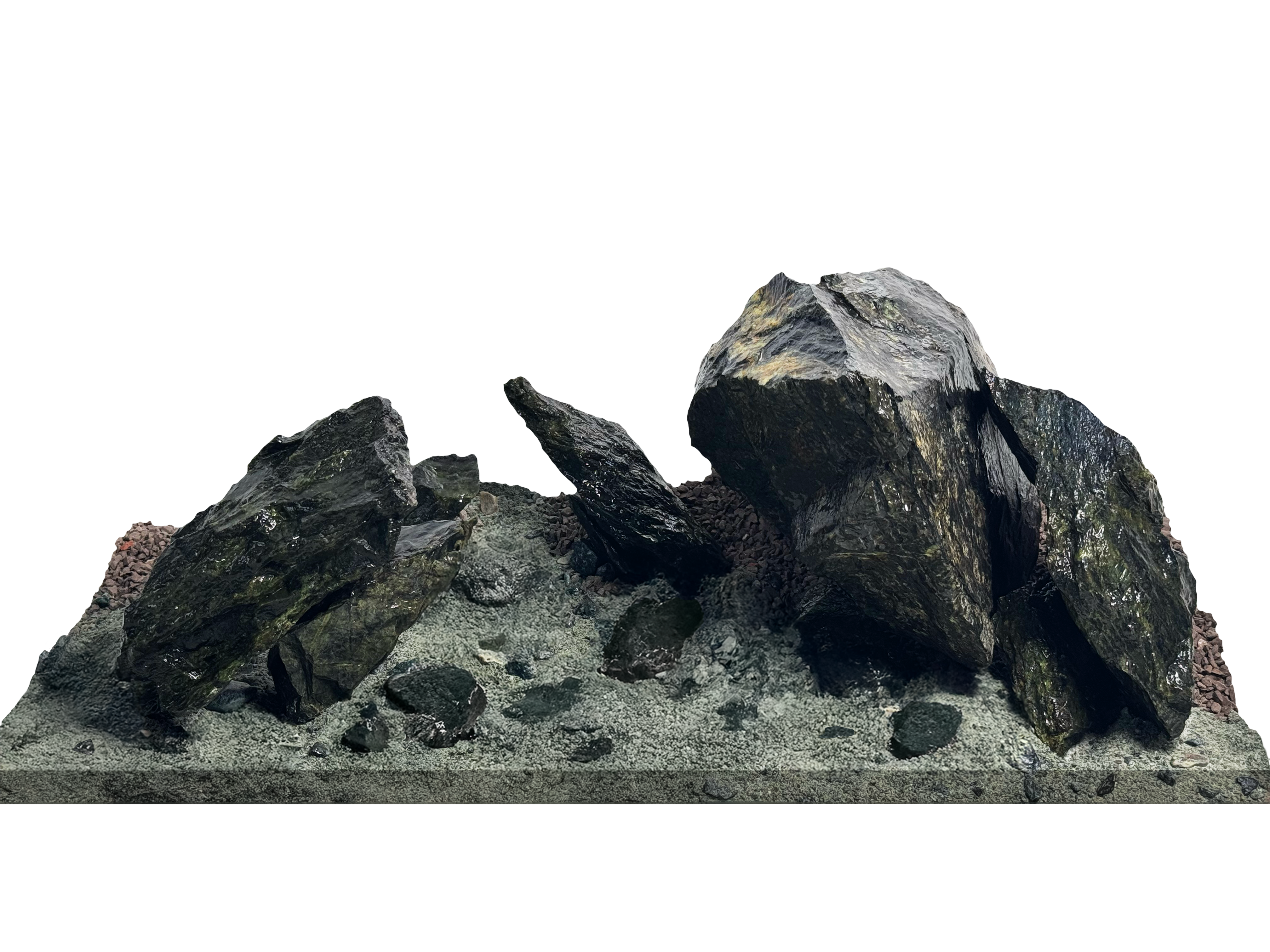 The foundation of the design, the Jade Stone Kit, is renowned for its deep emerald hues, subtle mica reflections, and naturally polished surfaces. Beneath the water’s surface, these stones shimmer softly, adding life and movement to every scene.