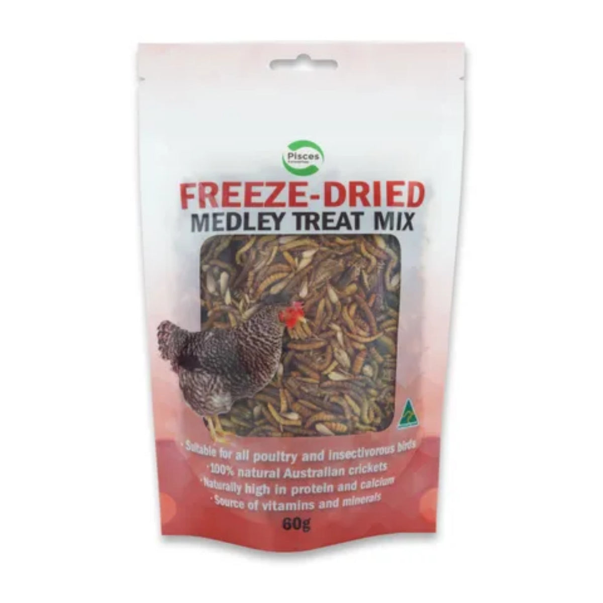 Australian Grown freeze dried crickets, mealworms and black soldier fly larvae perfect for your chicken or pet reptile. Just rehydrate and serve as a treat with a normal daily diet. High in protein and calcium!