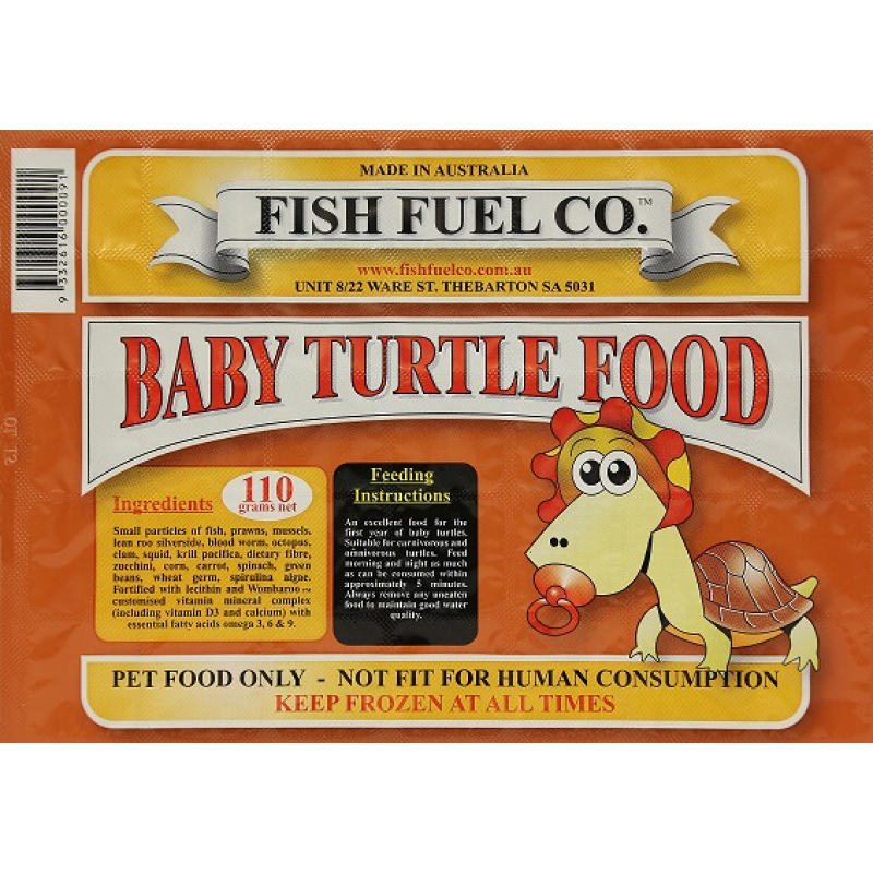 Fish Fuel Co Frozen Baby Turtle Food ideal for the first year of carnivorous and omnivorous baby turtles.