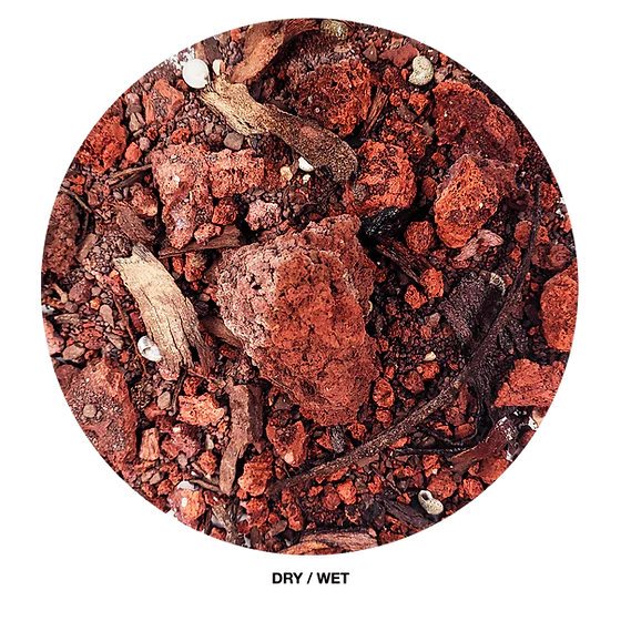 The warm, ochre colours of the Crikey Riverbeds are reminiscent of the red sand and rocks found in the Australian lands, while the inclusion of woody materials and shells adds dark and light contrast and detail. This carefully crafted substrate comprises a blend of sand and reddish gravel mixed with crushed pieces of red rocks, botanicals, and even tiny snail shells, providing an authentic recipe for a natural habitat display.