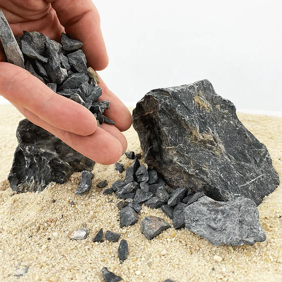Dark Grey Accents is a refined collection of miniature dark grey stones, meticulously chosen to complement and enhance the natural beauty of dark grey stones and boulders. Ideal for varieties such as Dali Stone, Wild Rhino Stone, Black Ryuoh, Dark Seiryu, Hakkai, and other dark grey stones, this selection draws inspiration from the majestic beauty of geological formations and rugged mountain landscapes. These accents add an impressive depth of detail to your nature-themed settings, imparting a sense of ancient grace and enduring beauty. Ideal for bringing a touch of realism and artistic allure to your aquarium, paludarium, or terrarium, Dark Grey Accents are a must-have for any enthusiast's collection.
