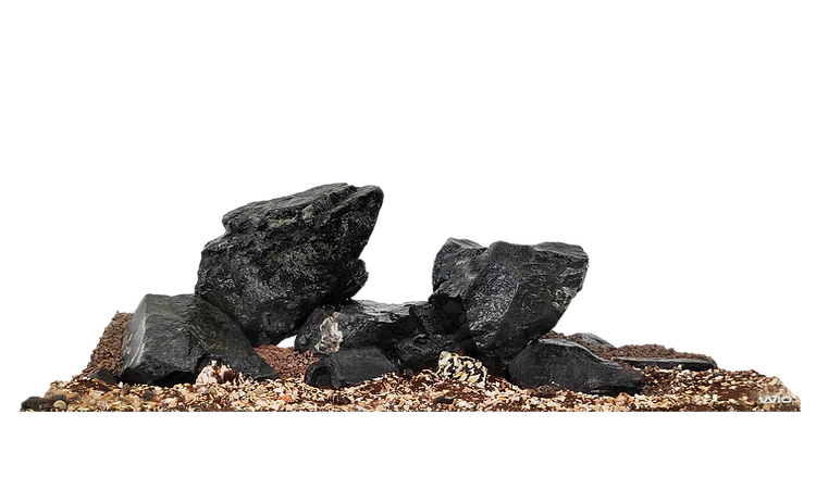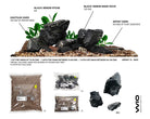 This kit includes a blend of dark sands, gravels, and crushed snail shells mixed with Black Venom Stones in different sizes, creating a high-contrast and striking biotope that mimics the natural environment of these regions.