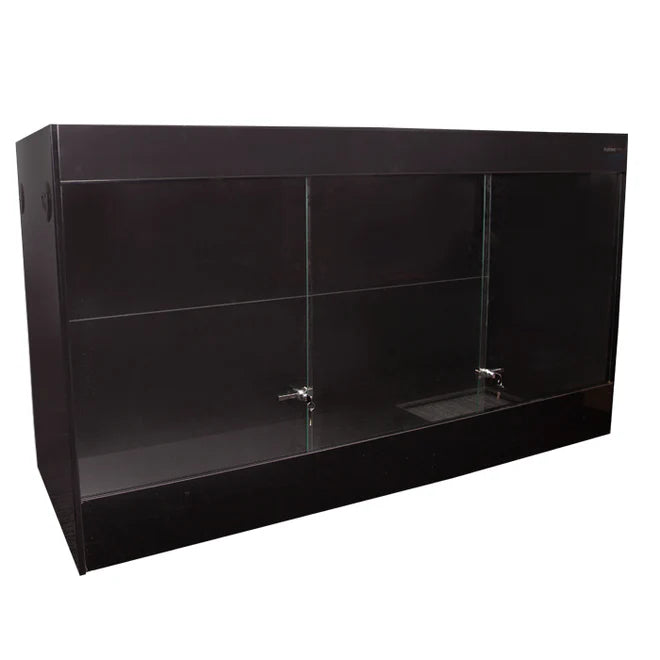 The beautiful gloss black finish compliments modern decor, whilst the recessed roof panel partially conceals heating and lighting fixtures. The S2M is the first commercially available enclosure in Australia that features a partial glass base specifically designed for the safe use of heat mats within melamine enclosures.