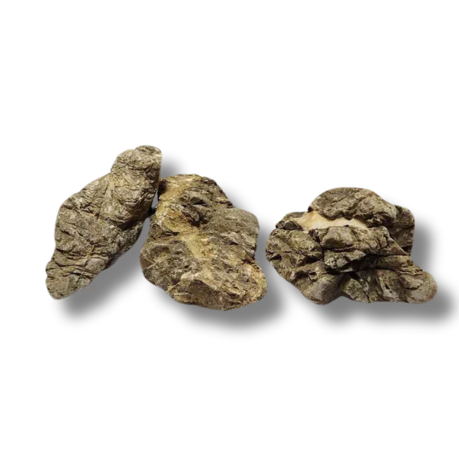 Aquarium safe Mordor stone. Excellent for aquascaping and it does not increase the pH or KH of the water. All pictures shown are wet and dry examples.
