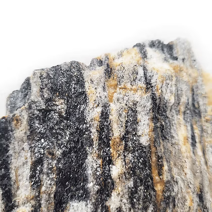 Grey Fossil Wood is a unique metallic grey stone that is characterized by its monolithic forms and sophisticated rounded shapes. It is often mistaken for Fossil Wood due to its similar shape and texture, but it is actually a highly metamorphic rock that contains bands, layers, or lenses of blocky crystals such as feldspar, alternated with bands of a flat, plate-like mineral such as mica. Gneiss represents some of the most advanced stages of metamorphosis with some of the most intense temperatures and pressures.
