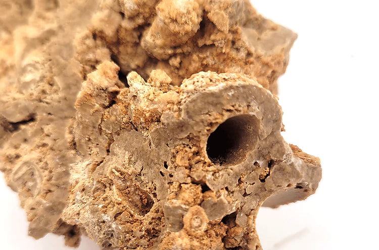 Paleorock Nano Rock is a sedimentary stone that gets its name from the numerous fossil shapes, tunnels, and marks that can be seen on its surface. These features are a testament to the ancient living creatures that once inhabited the earth, adding a sense of wonder and history to your aquatic or land-based habitat. The stone has a warm impression with brownish, whitish, and reddish colors, giving it a natural and earthy feel.