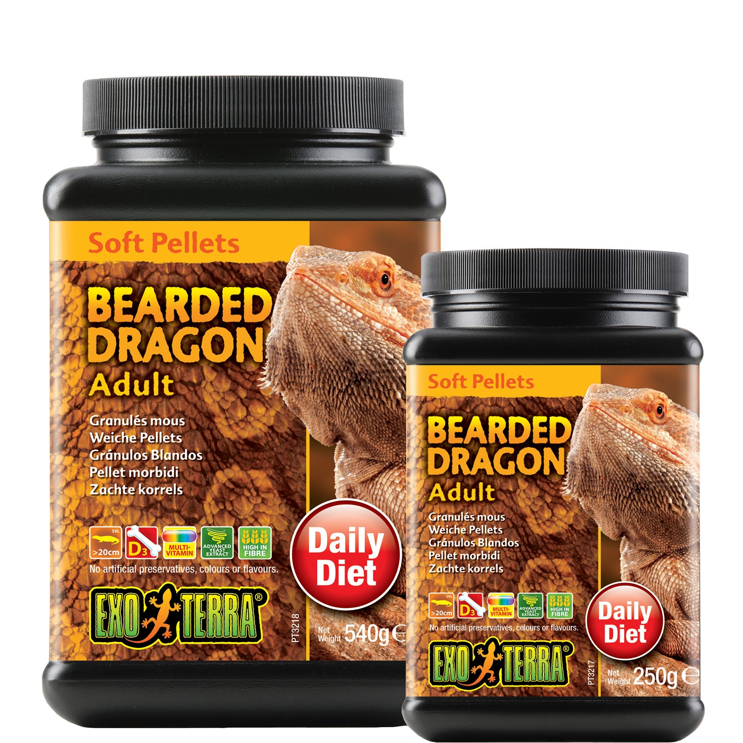Bearded Dragons are omnivorous and it is essential that you feed them a variety of live insects, fruits, vegetables, pellets and canned food. Juveniles should be feed 80% protein and 20% vegetables up to 4 months of age. Adults should be feed a mixture of vegetables and pellets daily with the occasional fruit and live insects should be offered 1-2 times a week. When offering live insects be sure they are an appropriate size for them to eat. As a guide, the length between your dragons eyes is suggested to use when choosing the size of their insects. Always dust live insects with a calcium powder and preferably "gut load" them with a suitable insect food. This will ensure the maximum calcium intake for the day.