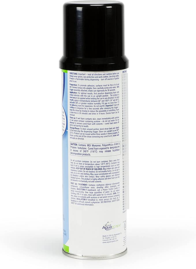 Design captivating waterfalls and pond features easily with Black Waterfall Foam. This 340g can of Aquascape Pond and Waterfall Foam Sealant simplifies the process of filling gaps and joints between rocks and boulders, ensuring maximum water flow in your waterfalls and streams. With no need for a foam gun, the easy-to-use spray can provides a convenient solution for both beginners and experienced installers. Its black polyurethane foam colour blends seamlessly with rocks and gravel for a natural appearance.